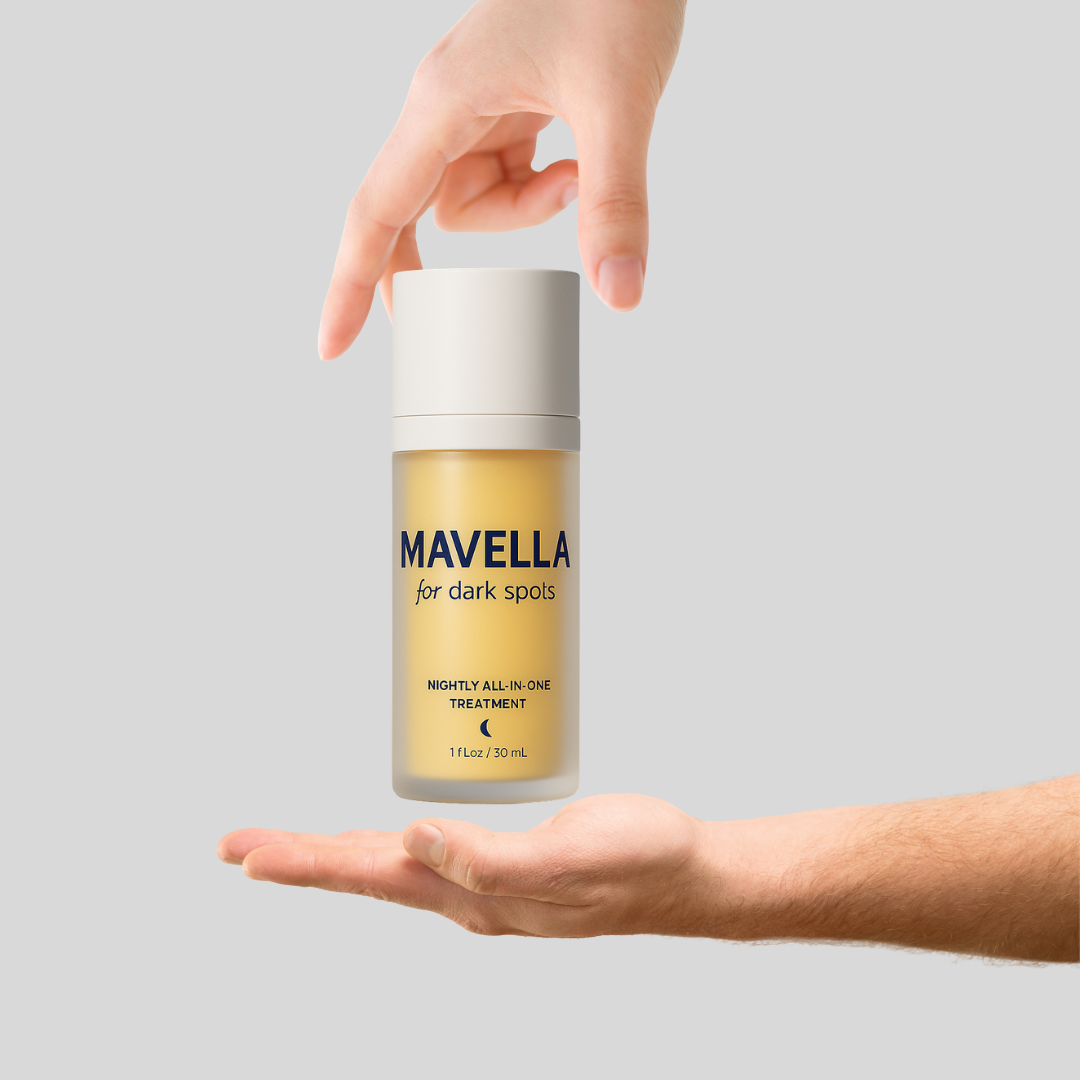Mavella™ is more than just a spot corrector it’s your all-in-one discoloration solution. It doesn’t just fade visible spots; it stops new ones from forming while smoothing texture and boosting radiance. Your skin will look clearer, healthier, and more youthful—without harsh irritation.